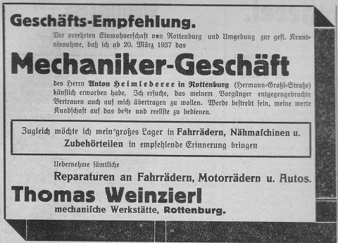 Im Jahre 1936 erwarb Thomas Weinzierl das vordere Haus und nutzte es als Wohn- und Geschäftshaus.