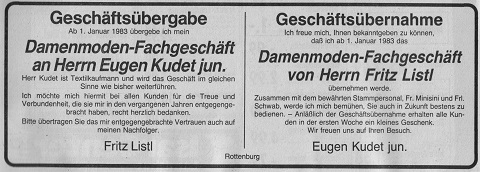 Im gleichen Jahr pachtete die Firma Kudet aus Rohr das Modegeschäft.